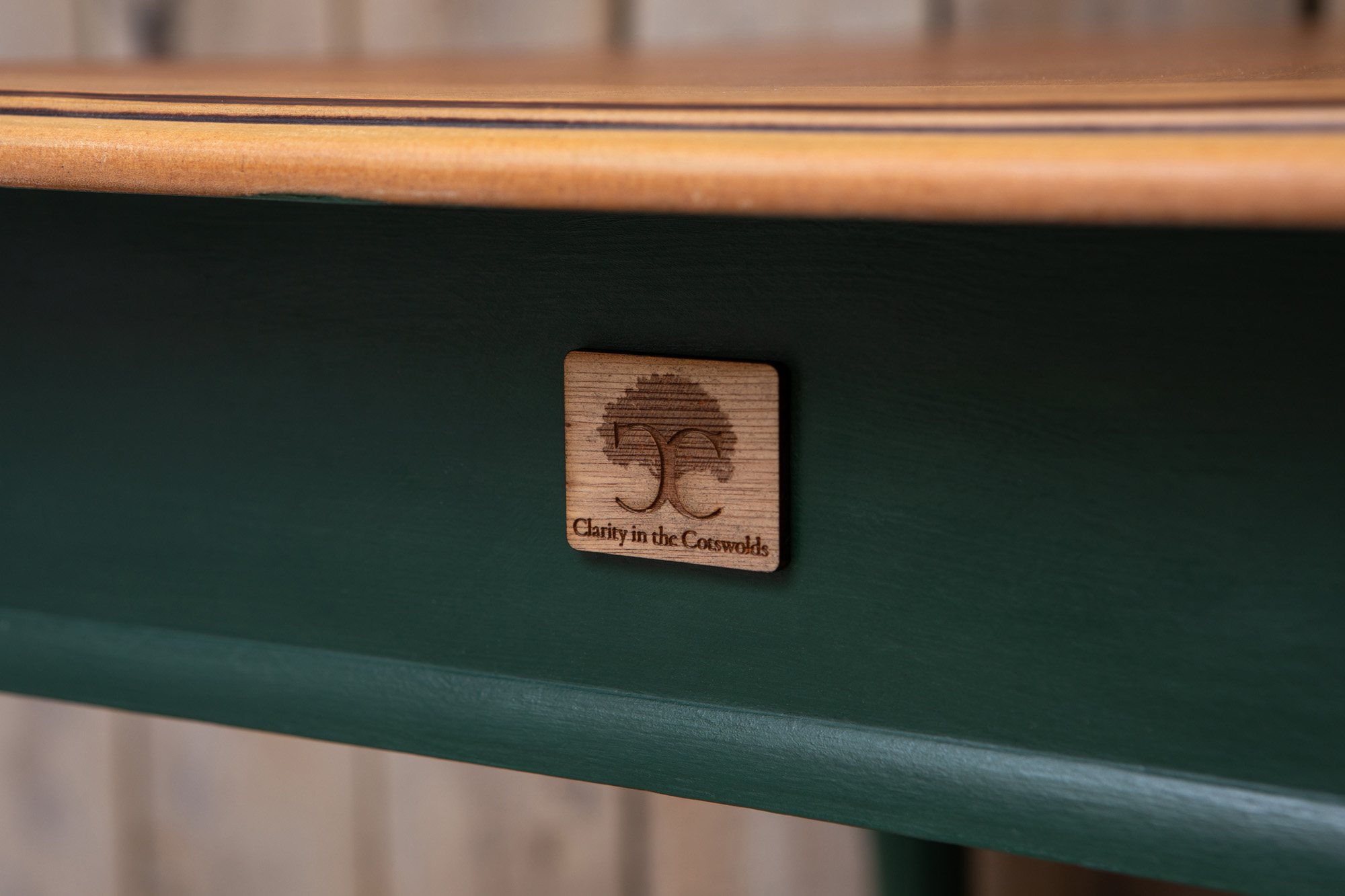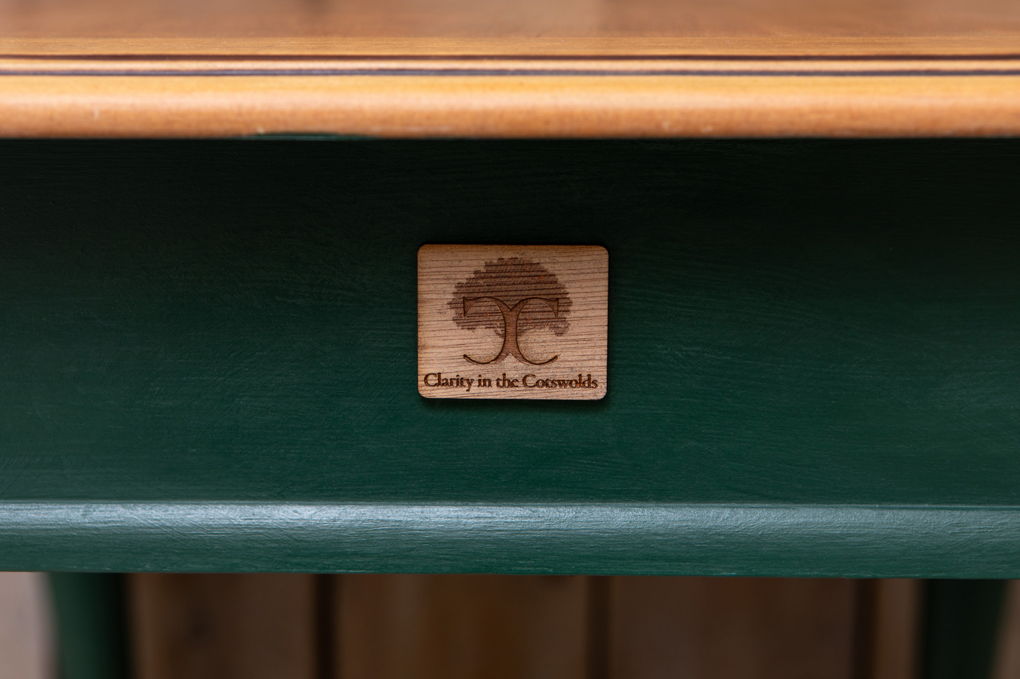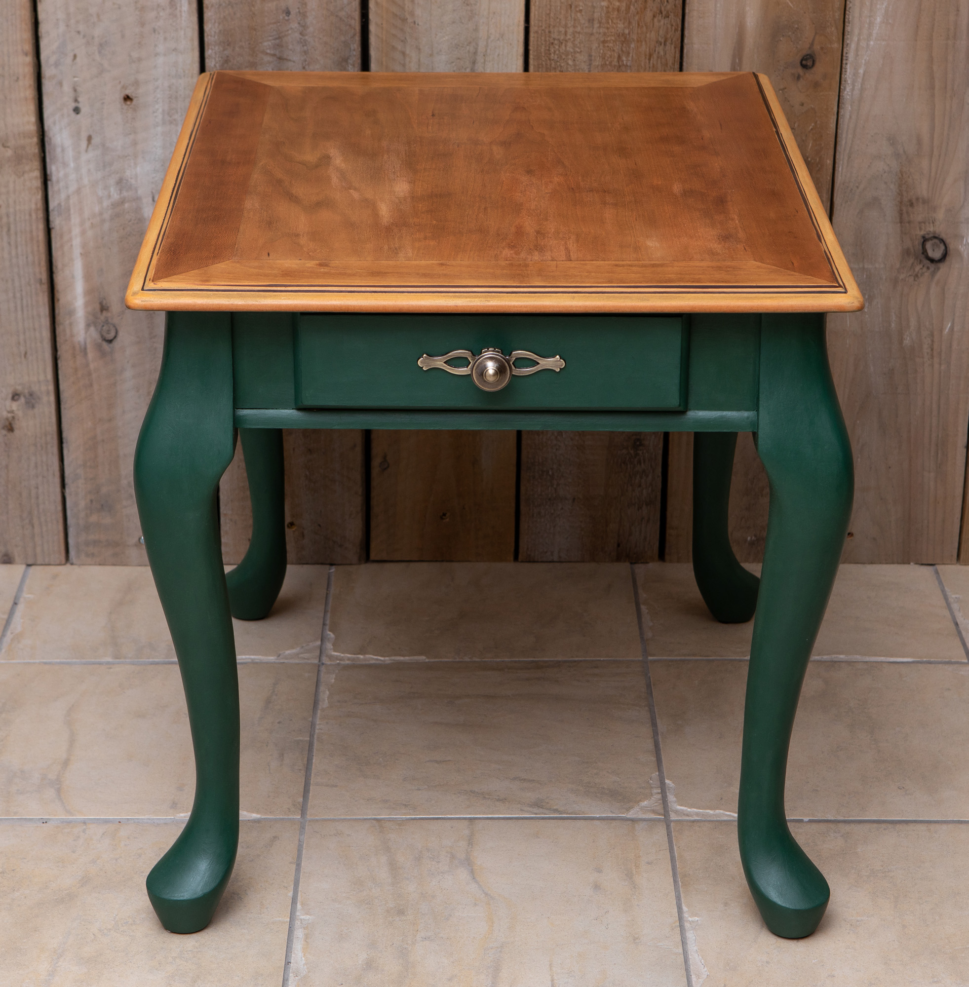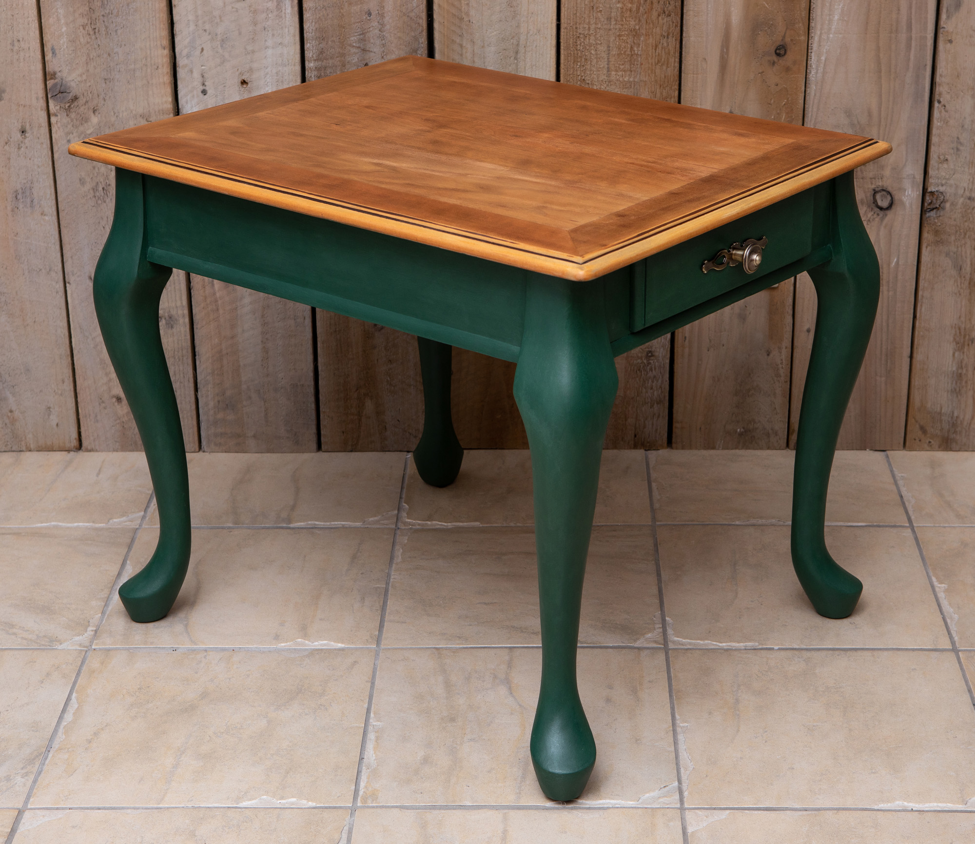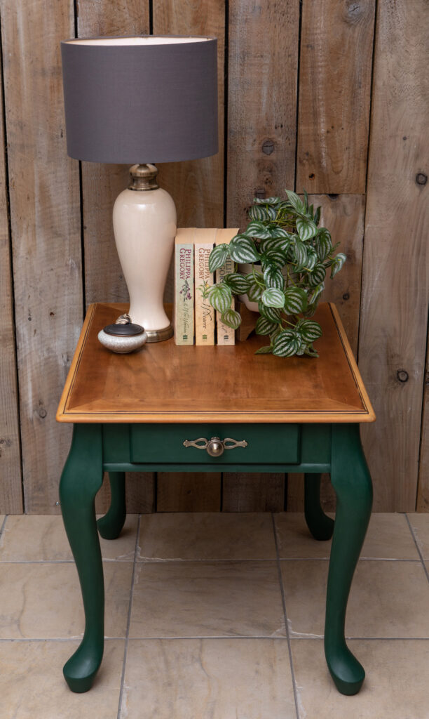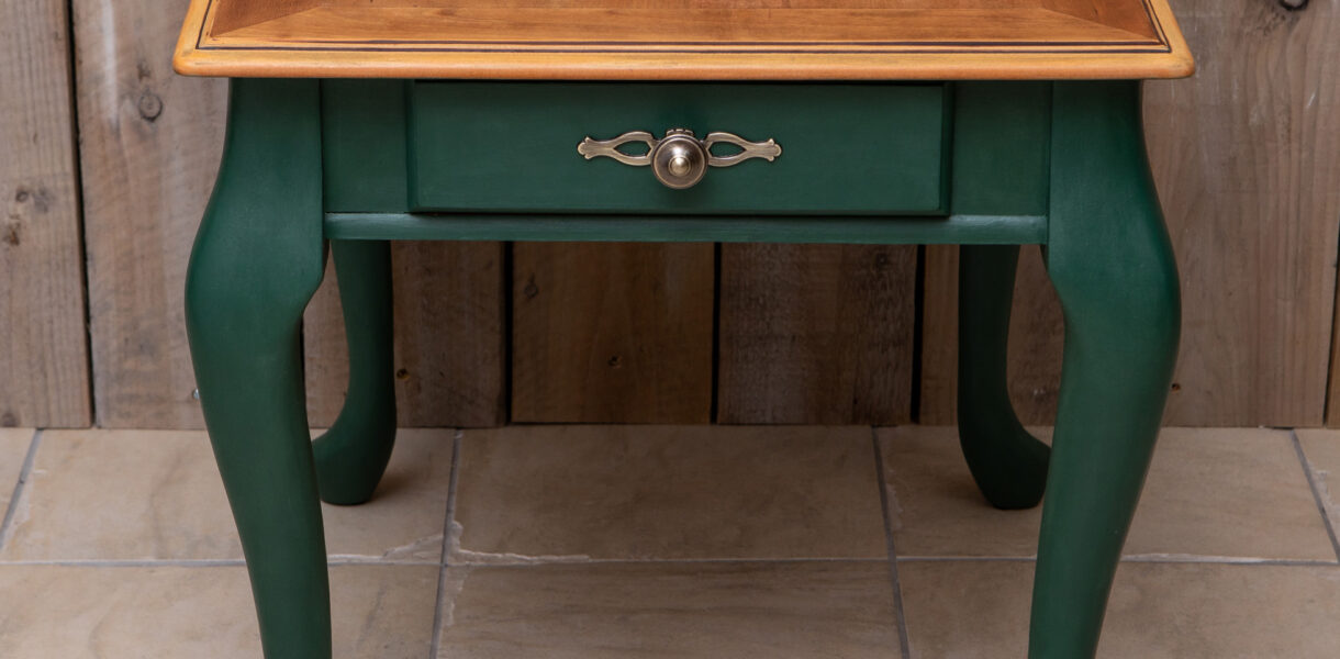 This elegant Verde side table in Amsterdam Green with oak beeswax top has curved Queen Anne legs and long drawer. A contemporary take on the classic dark wood design side table, we’ve chosen to use one of the key shades for 2022 – green symbolises renewal, calm and growth, ideal for our first creation of the year!