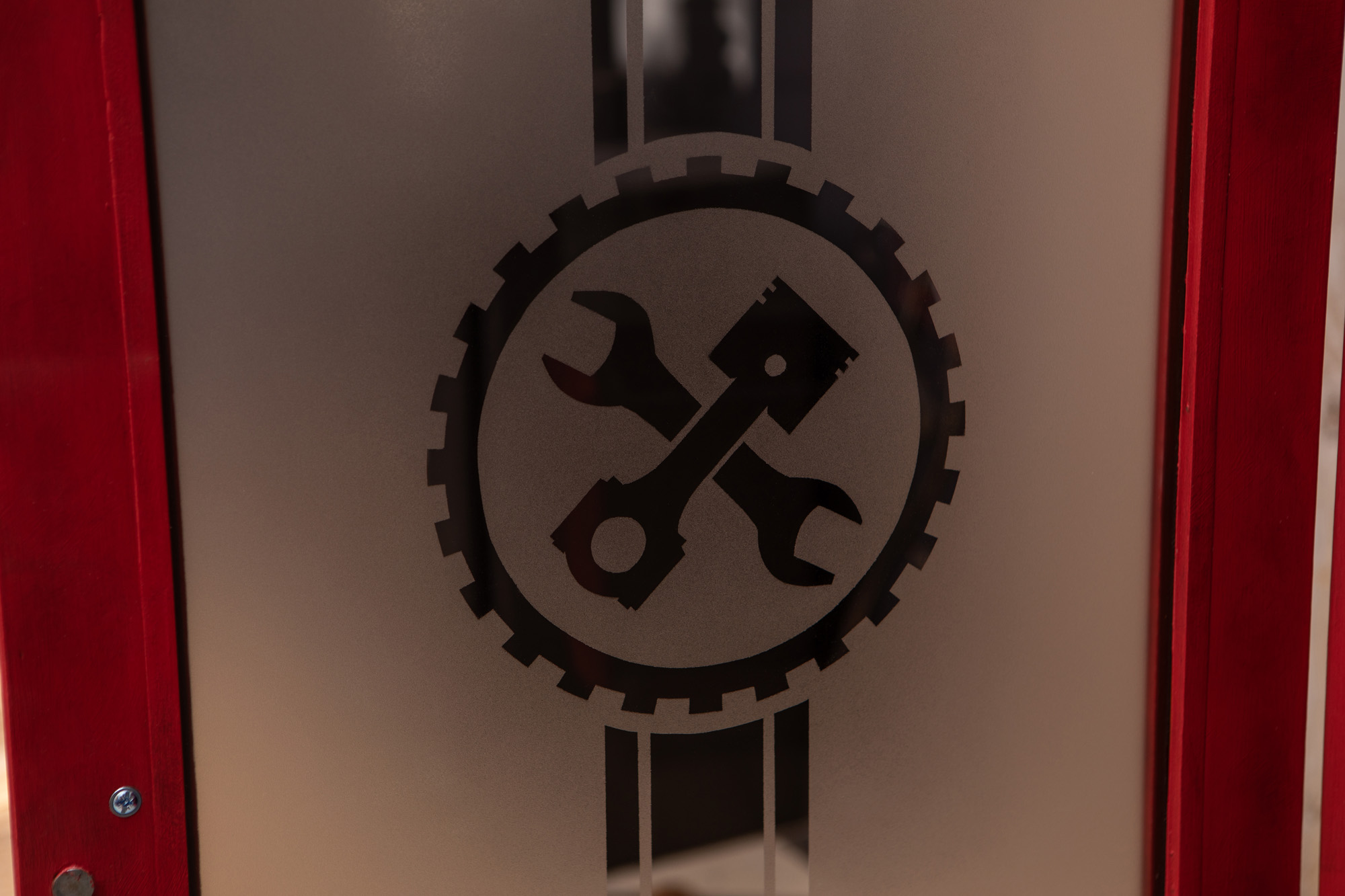 The cherry-on-the-top is the custom designed glass etch, which features a cog, piston and spanner motif with a classic racing stripe.
