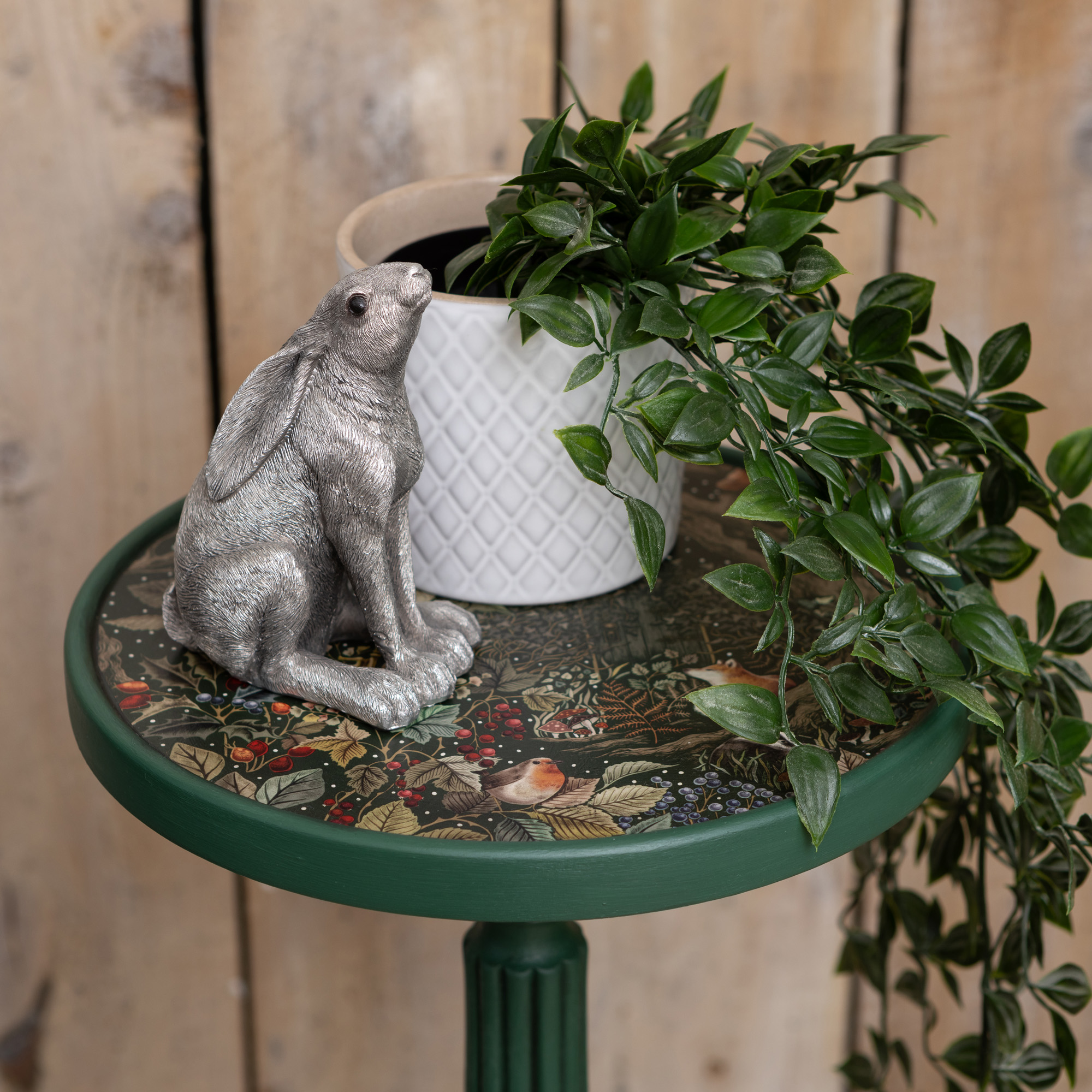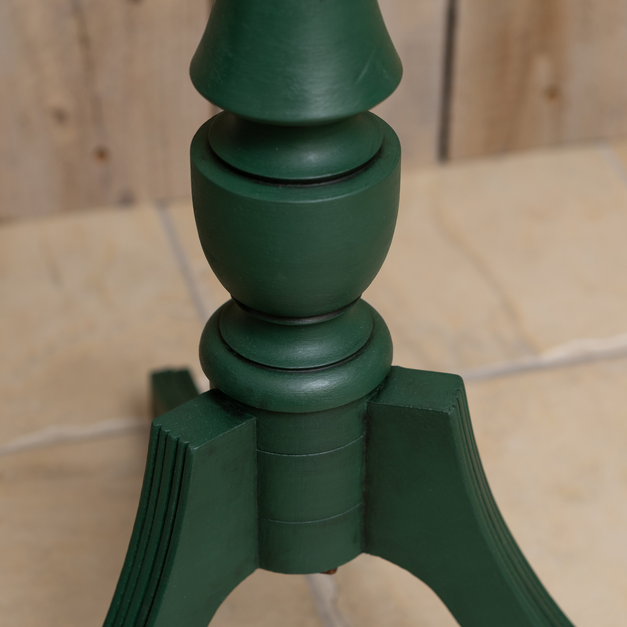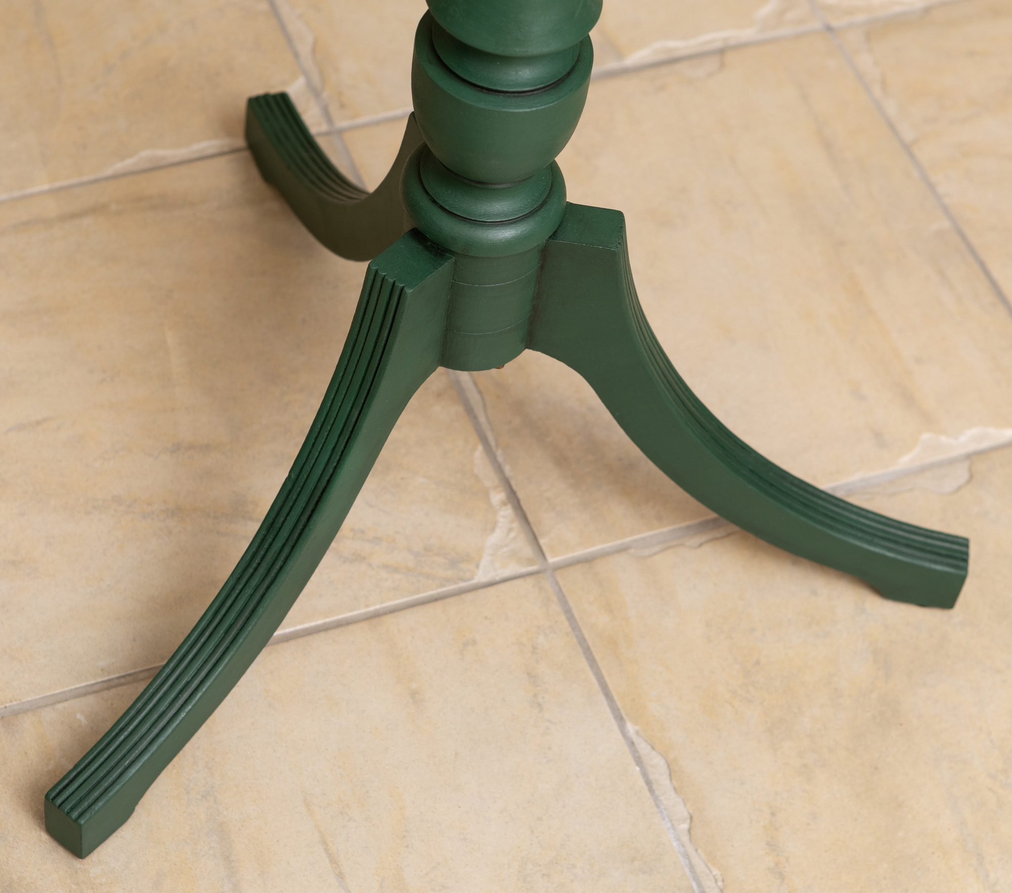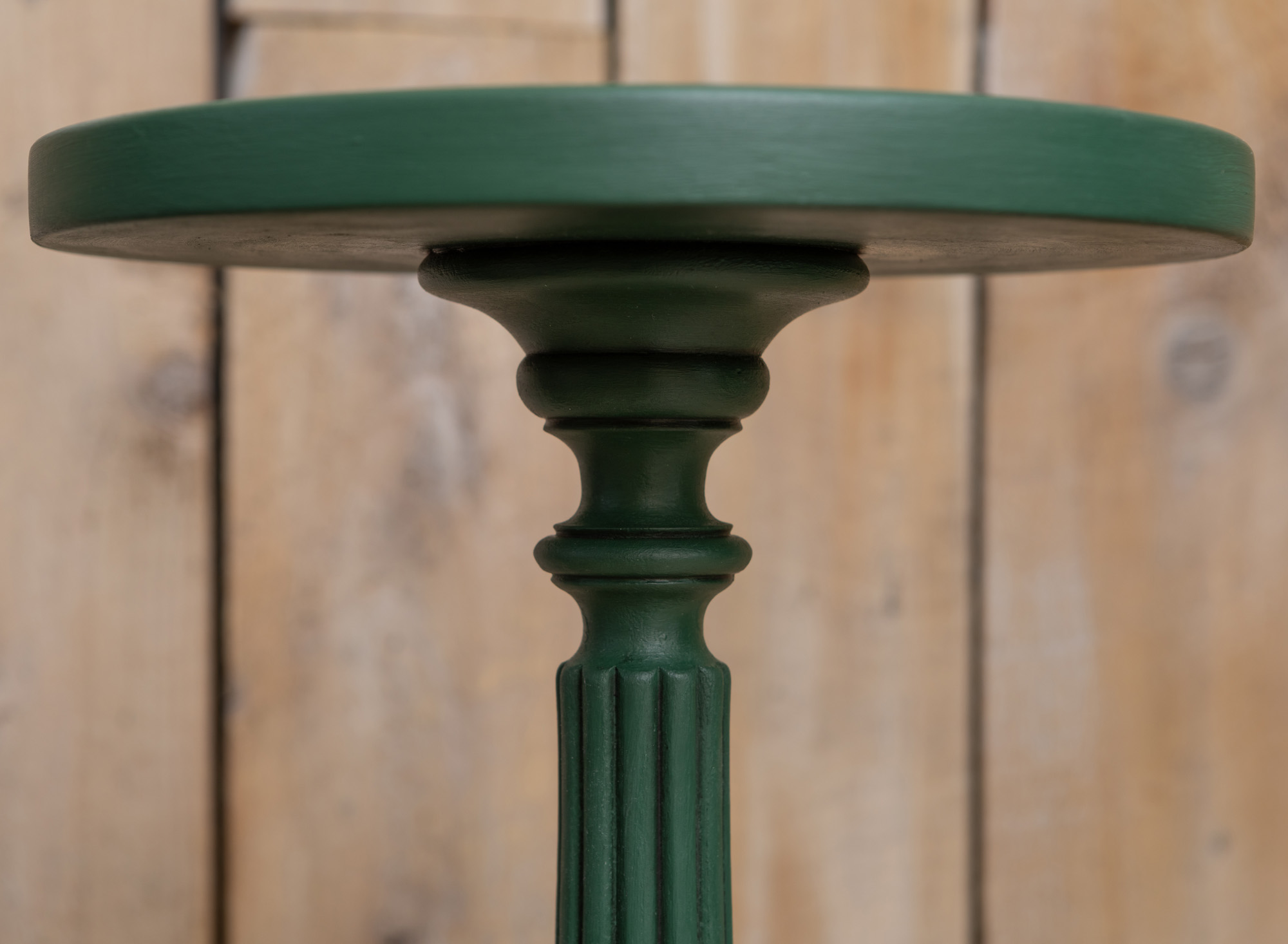 Plant stands have been experiencing something of a resurgence in popularity, and we carefully restored this one to it’s former glory. Painted in Amsterdam Green Annie Sloan chalk paint, finished with black and clear wax to protect & seal, this elegant plant stand then had the the top decorated with stunning Winter Woodland paper decoupage.