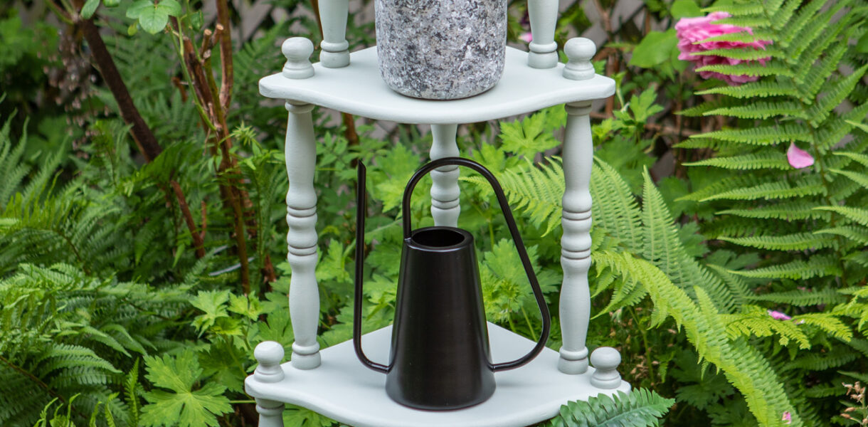 This four tier corner plant stand came to us in need of a Clarity reinvention, …
